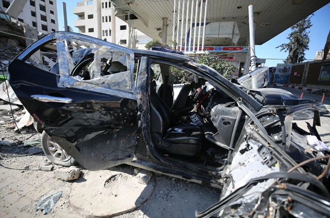 가자시 텔 알하와(Tel al-Hawa) 지역에서 이스라엘군의 공격을 받아 여섯 살 힌드 라잡과 가족 다섯 명이 사망한 차량의 파괴된 모습. (사진다우드 아보 알카스/Dawoud Abo Alkas, 아나돌루/Anadolu)