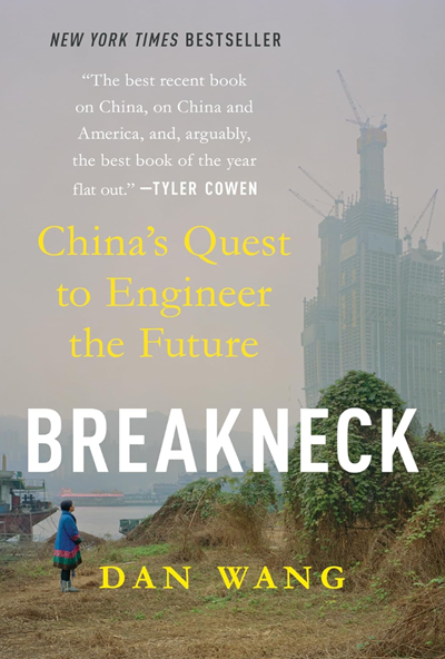 댄 왕(Dan Wang)의 ⟪질주미래를 설계하려는 중국의 도전⟫(Breakneck: China’s Quest to Engineer the Future)은 미국과 중국의 차이그리고 왜 중국이 우위를 점하고 있는지 분석한 책으로 극찬을 받았다스탠퍼드대의 우파 성향 후버 역사 연구소 소속 연구원인 왕은두 초강대국의 차이가 경제 체제의 차이 때문이 아니라 방해에 능숙한 변호사 중심의 미국 엘리트와 건설에 능한 엔지니어 중심의 중국 기술관료 집단의 대비 때문이라고 주장한다그러나 이는 최소한 과도한 단순화다중국이 미국의 경제적 패권을 위협할 정도로 부상한 이유는높은 생산적 투자율과 국가가 주도하고 국유기업이 이끄는 산업 전략 덕분이며투기적 금융자산과 비즈니스 서비스에 투자하는 데 치중한 미국 경제와의 대비 속에서 이해해야 한다.