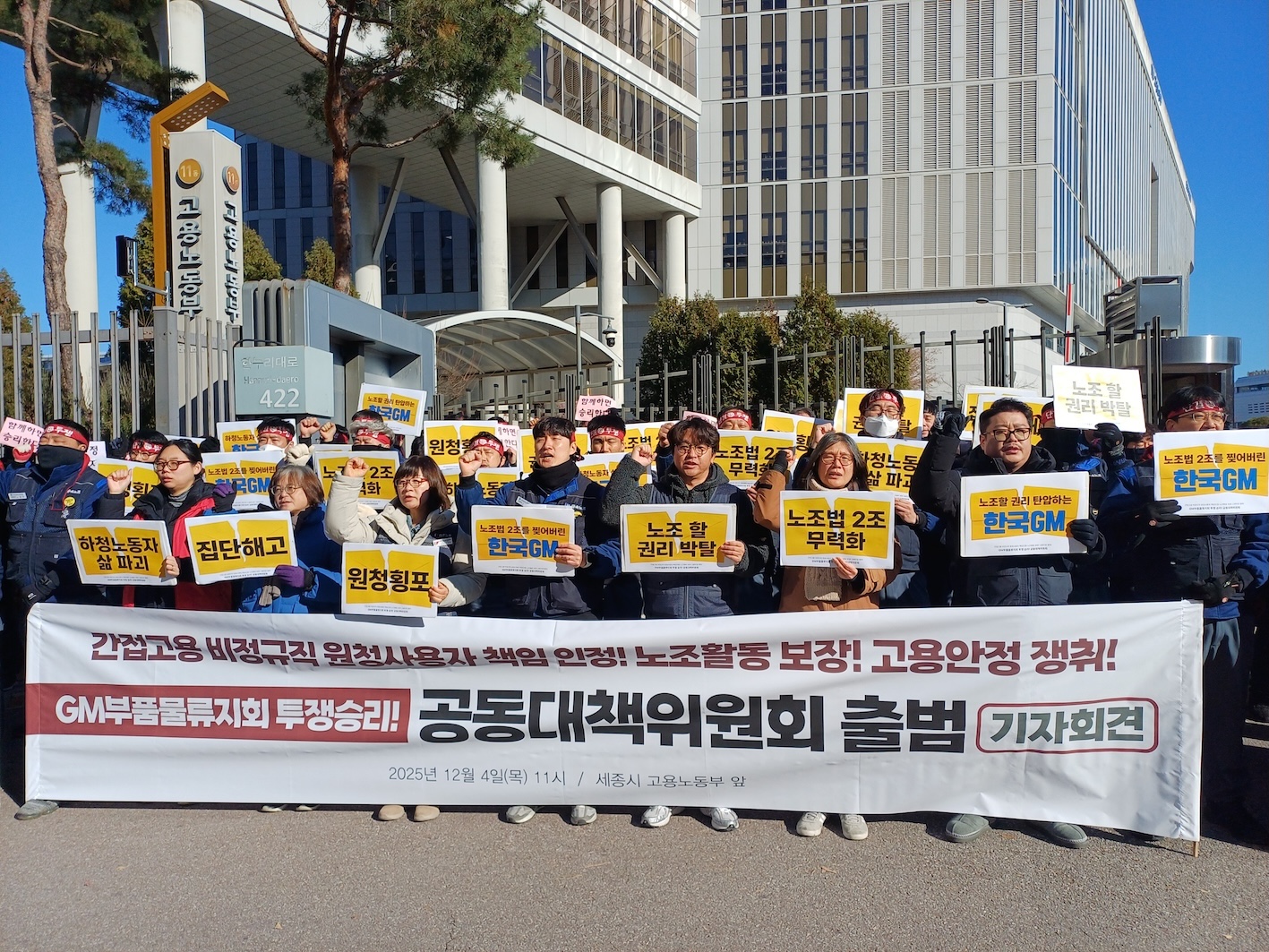 이런 일을 막자고 노조법 2·3조를 개정한 것이다. 이 개정안이 통과되기까지 수많은 비정규직 노동자들이 거리로 쫓겨나고 거리에서 농성하고, 고공에 올라가고, 단식하고, 오체투지를 했다. 그렇게 만들어진 법을 무력화하고 비웃는 한국GM과 고용노동부의 태도를 우리는 용서할 수 없다.