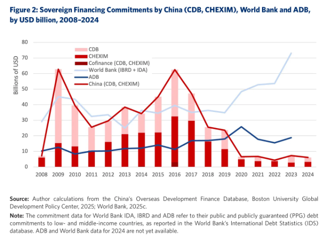 2008년부터 2024년까지, 중국의 두 개 글로벌 개발금융기관(DFI), 즉 국가개발은행(CDB)과 중국수출입은행(CHEXIM)은 글로벌 사우스(Global South) 국가들에 4,720억 달러 이상을 지원했다(Ray 외, 2025).