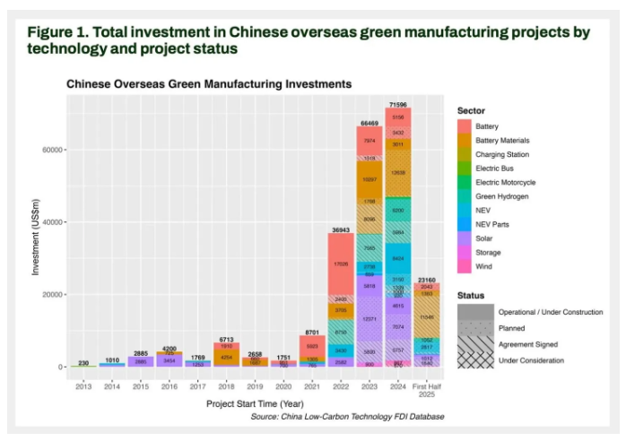 한편, 넷제로 정책연구소(Net Zero Policy Lab)의 데이터는 2022년 이후 녹색 제조 분야의 해외직접투자(FDI)가 폭발적으로 증가한 사실을 보여주고 있다.