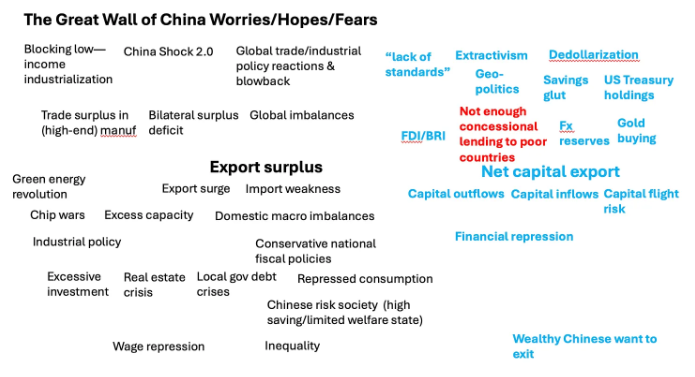 곧 나는 브래드 셋서(Brad Setser)의 분석으로 시선을 옮기게 되었다. 그는 서구에서 중국의 국제수지 통계를 가장 정통하게 분석하는 인물이다. 중국의 해외 대출 급증은 현재 폭등하고 있는 경상수지 흑자와 어떤 관계가 있는가? 자본 유출은 어떻게 통제되고 있는가? 일대일로(BRI) 투자, 양허성 대출, 외화보유액, 미국 국채 보유, 금 보유 증가는 중국의 국가 대차대조표상에서 어떤 위치를 차지하고 있는가?